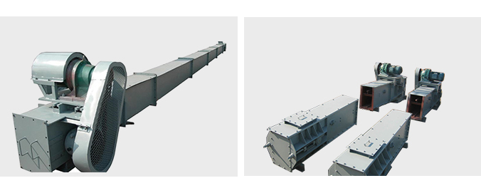 本機結構緊湊合理,采用高強度礦用圓環鏈或板式滾子鏈作牽引構件,改埋刮板機牽引鏈條與導軌的滑動摩擦為托輪的滾動摩擦,大大減小了刮板鏈條的運行阻力,運行功耗小,刮板鏈條壽命長,并可實現遠距離的物料輸送,輸送量大。