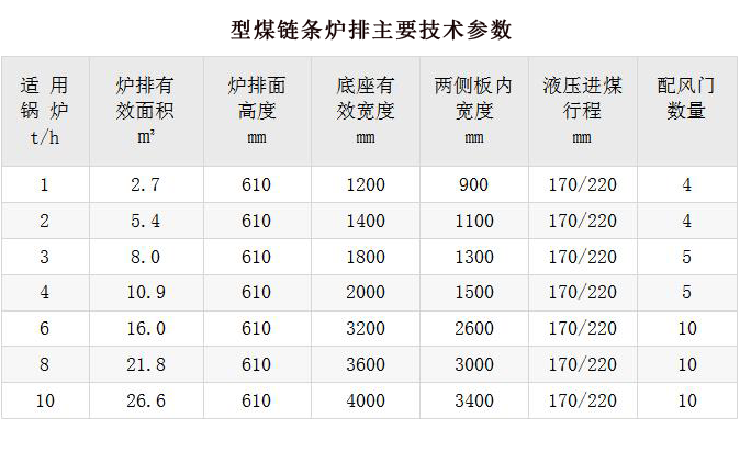 型煤鏈條爐排是我公司專為型煤鍋爐設計生產的機械化燃燒設備。一般可為蒸發量1~10t/h的型煤蒸汽或熱水鍋爐配套,也可用于各種加熱、烘干專用設備中。適宜燃燒以煙煤、褐煤和泥煤為主的方形蜂窩型煤。型煤鏈條爐排使用的煤質應符合下列要求: