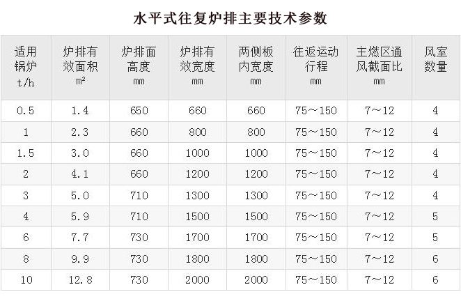 水平式往復(fù)推飼爐排是一種機械化的鍋爐層燃設(shè)備,一般可為蒸發(fā)量0.5~10t/h的往復(fù)爐排鍋爐配套,適宜燃燒煙煤、褐煤和泥煤等。往復(fù)爐排對煤質(zhì)要求有所降低,可燃用有粘結(jié)性、多灰、難以著火的低質(zhì)煙煤,比鏈條爐有較好的煤種適應(yīng)性。